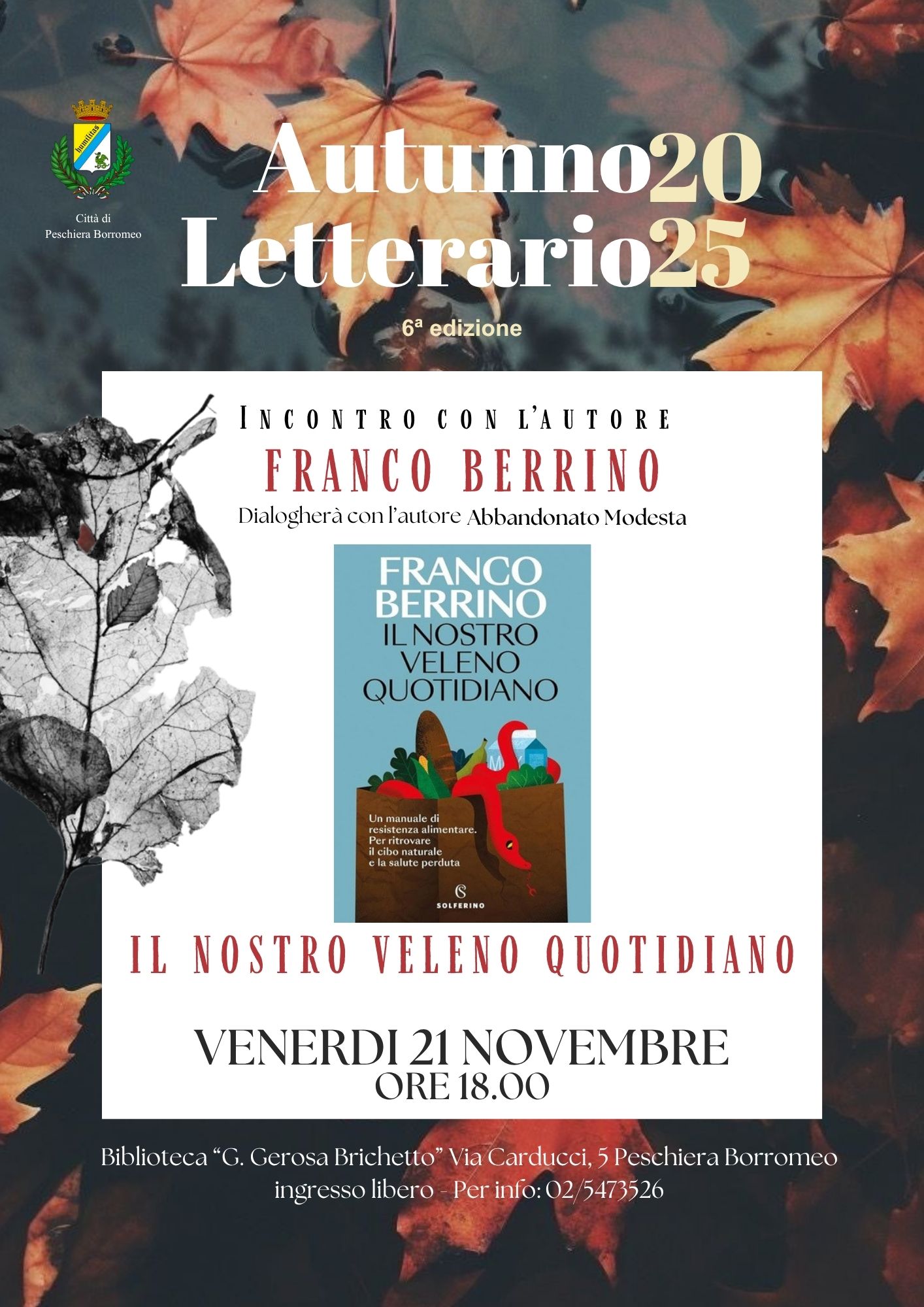 Appuntamento con Franco Berrino, autore de "Il nostro veleno quotidiamo" (Solferino, 2025)